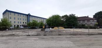 Planty Salinarne – trwają prace ziemne przy budowie komory technologicznej i niecki nowej fontanny.