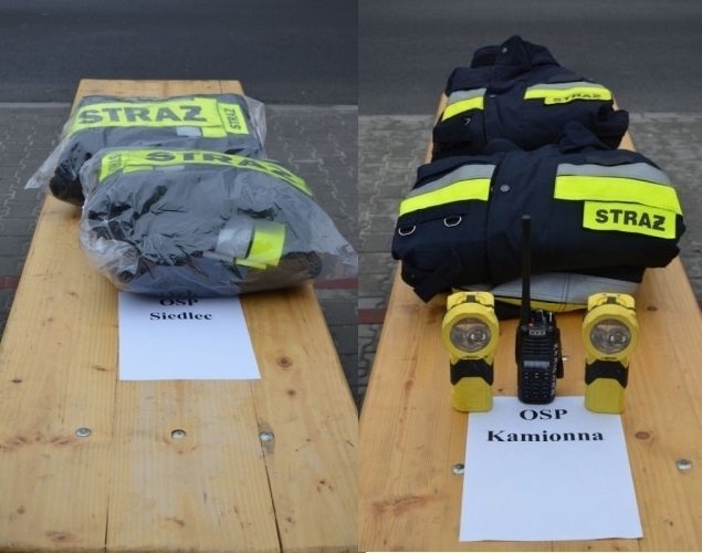 OSP Połom Duży - 3 000 zł na zakup selektywnego alarmowania OSP Dołuszyce - 6 000 zł na zakup ubrań specjalistycznych, koszarowych, butów oraz torby ratunkowej z deską