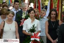 Następnym punktem uroczystości był Apel Poległych, po którym nastąpiło składanie wieńców. Na mogile spoczęły wieńce m.in. od pani poseł, samorządu powiatu i miasta, policji i straży pożarnej, "Solidarności", delegacji różnych typów szkół oraz wielu organizacji i instytucji.