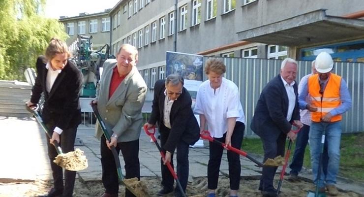 Pod szkołę zjechał już ciężki sprzęt i rozpoczęto prace przygotowawcze pod budowę. Trwają prace rozbiórkowe i kanalizacyjne. Symbolicznego wbicia łopat dokonali przedstawiciele Starostwa Powiatowego – starosta Ludwik Węgrzyn, wicestarosta Józef Mroczek, przewodnicząca Rady Powiatu Bernadetta Gąsiorek, dyrektor szkoły Jan Balicki, przewodniczący Rady Uczniowskiej Oskar Łoziński oraz właściciel firmy Przemysław Broszkiewicz.