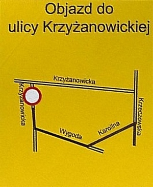 Na czas wykonywanych prac został wyznaczony objazd, który będzie prowadzony następującymi ulicami: Krzyżanowicką, Krzeczowską, Karolina i Wygoda. Podczas prac prowadzonych przy połówkowym zajęciu jezdni ruchem kierować będą pracownicy posiadający odpowiednie przeszkolenie i wyposażeni w sprzęt łączności bezprzewodowej.
