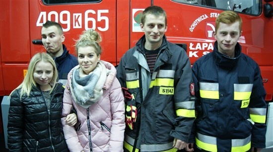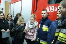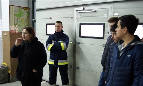 Młodzież miała także okazję zwiedzić siedzibę OSP Łapanów, po której oprowadził Pan Łukasz Bujak opowiadając o prawnej działalności, celu i zadaniach Ochotniczej Straży Pożarnej. Ponadto wyjaśnił działanie Krajowego Systemu Ratowniczo-Gaśniczego (KSRG) oraz opisał wyposażenie wozu gaśniczego jednostki i podstawowy ubiór strażaka.