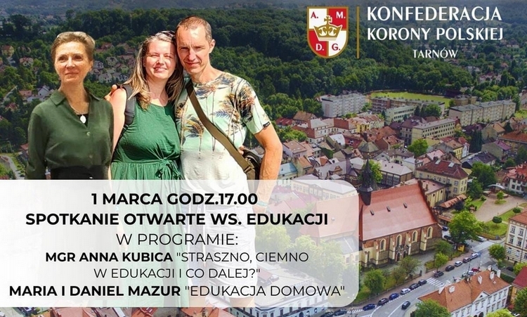 Marta Mrzygłód - Sekretarz Generalny Konfederacji Korony Polskiej i Przewodnicząca Okręgu 15 Tarnów oraz Elżbieta Weigel-Milleret - Wiceprzewodnicząca Okręgu zapraszają w niedzielę 1 marca godz. 17.00 do Miejskiego Domu Kultury w Bochni na spotkanie otwarte dotyczące edukacji.