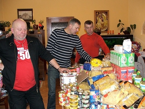 Wróćmy jednak do głównego celu wyprawy p. Staszka i jego przyjaciół. Ponieważ data ich kolejnego przybycia na Litwę pokrywała się z dniem św. Mikołaja przywieźli ze sobą 360 paczek świątecznych, głównie z żywnością i słodyczami, ok. 250 kg suchej żywności: cukru, mąki, kasz, makaronów, ubrania, mnóstwo środków czystości, dużo zabawek. Pytany, jak to wszystko zgromadzili, odpowiada krótko: ludzie dali. Akcja przeprowadzana jest równocześnie w USA (dokładnie na Florydzie przez wspaniałych ludzi z Fundacji Direct Help to Eastern Europe, Inc.), w Bochni, Brzesku i Tarnowie. Pracownicy Polskiej Spółki Gazownictwa samoopodatkowują się na ten cel. Inne osoby przekazują dary w naturze. Warta podkreślenia jest postawa dzieci ze szkoły podstawowej w Jodłówce, które kolejny raz przygotowały paczki świąteczne dla swoich rówieśników na Litwie. Na pytanie, jak to wygląda w Bochni p. Dębosz wskazuje na wielkie zaangażowanie pracowników Urzędu Miasta, Muzeum, Hospicjum im. bł. Edmunda Bojanowskiego, gdzie dużą pomocą służy p. Anna Suwara (bocheńskie hospicjum przekazało w tym roku dużo lekarstw i podstawowego sprzętu medycznego dla hospicjum wileńskiego) oraz osobiście p. Anny Morajko.