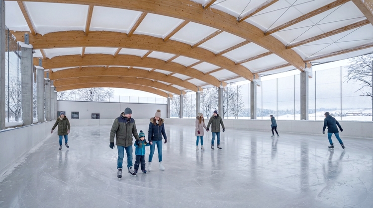 Zadaszona tafla z profesjonalnym agregatem chłodniczym w sezonie zimowym będzie funkcjonować jako lodowisko, natomiast latem jako kort tenisowy ze sztuczną nawierzchnią, co zapewni efektywne, całoroczne wykorzystanie obiektu.
