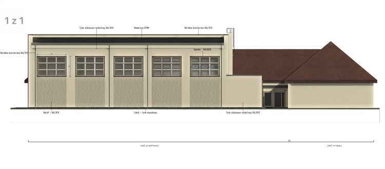 W części nowo projektowanej będą się znajdować: sala gimnastyczna, pomieszczenie dla nauczycieli wychowania fizycznego z sanitariatem, pomieszczenia techniczne z kotłownią, magazyn sprzętu sportowego, w części budynku istniejącego zostanie wykonane zaplecze sanitarno – szatniowe oraz pomieszczenie porządkowe.