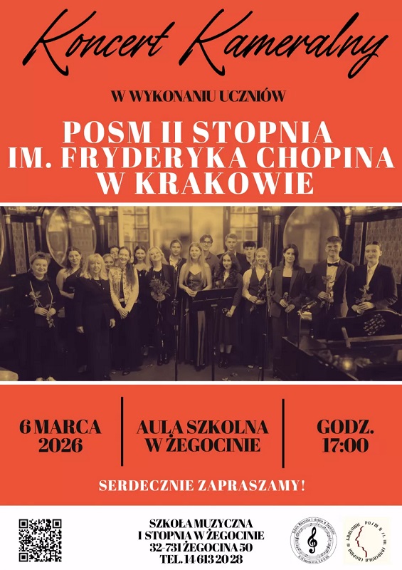 Dyrekcja oraz Społeczność Uczniowska Państwowej Ogólnokształcącej Szkoły Muzycznej II stopnia im. Fryderyka Chopina w Krakowie oraz Szkoły Muzycznej I stopnia w Żegocinie zapraszają na wyjątkowe wydarzenie artystyczne.