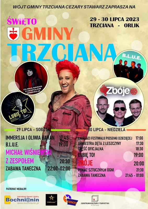 Już wkrótce gmina Trzciana będzie miała swoje Święto. Wadze gminy zapraszają na boisko Orlik w Trzcianie w dniach 29 i 30 lipca.