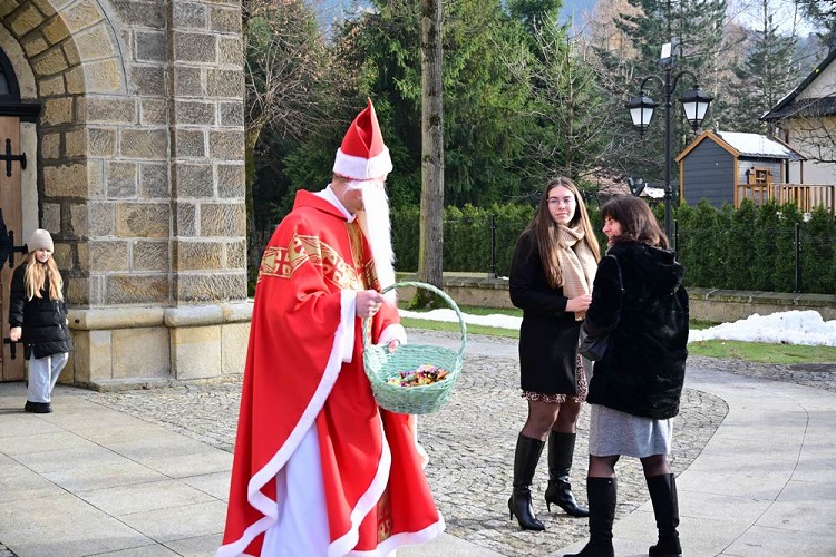 W ten dzień św. Mikołaj również nie próżnował. Na placu kościelnym znowu obdarowywał wszystkich słodkościami.