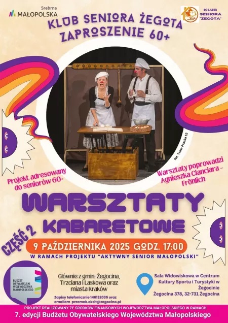 Dziś w sali widowiskowej CKSiT w Żegocinie odbyły się warsztaty kabaretowe. Wydarzenie zostały zorganizowane w ramach projektu Aktywny Senior Małopolski.