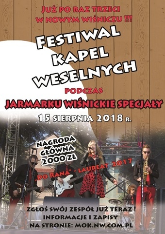 Miejski Ośrodek Kultury w Nowym Wiśniczu zaprasza wszystkie kapele weselne na swój przegląd, ktory odb odbędzie się 15 sierpnia 2018.