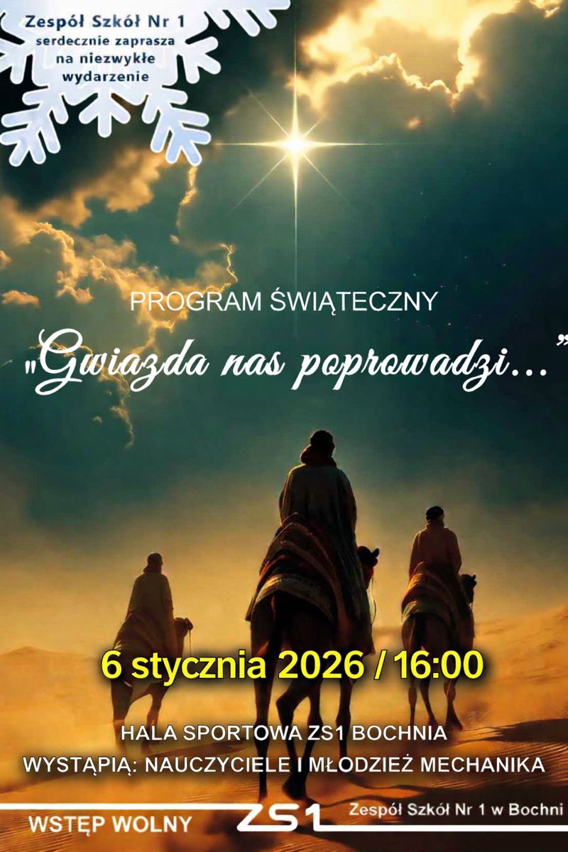 Już 6 stycznia (wtorek) na hali sportowej Zespołu Szkół Nr 1 w Bochni przy ul. Windakiewicza 23 odbędzie się nietypowy spektakl. To kolejna odsłona jasełek granych przez nauczycieli szkoły. Zeszłego roku odbyło się przedstawienie oparte na powieści „Chłopi” Władysława Reymonta, tym razem program bożonarodzeniowy zatytułowany jest „Gwiazda nas poprowadzi” gdzie pewna część wątków nawiązuje do współczesności.