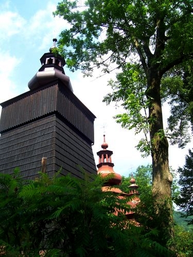 Dotarliśmy do Roztoki Wielkiej, wsi wciśniętej w góry pasma Jaworzyny Krynickiej zamykającej ostatecznie od południa i wschodu dolinę Kamienicy. Nad jej źródłowym strumieniem pozostała po Łemkach cerkiew greckokatolicka. Dalej już tylko Krzyżówka ze swoimi drogami prowadzącymi głęboko w dawny kraj łemkowski.