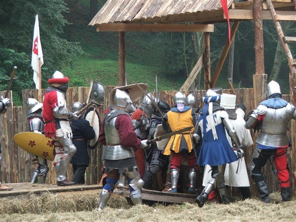 W niedzielę 18 września dotknęliśmy średniowiecza, gdyż tej epoce został dedykowany jubileuszowy Turniej. Były zatem, jak zawsze, potyczki rycerstwa konnego i pieszego, walczono na miecze, kopie, rohatyny, topory i wszystko to, co w tamtym okresie wymyślono do wzajemnego zabijania się, były pojedynki łucznicze, wielokrotnie przemówił "bóg wojny" czy artyleria.