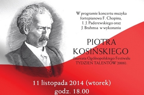 Centrum Paderewskiego Tarnów-Kąśna Dolna zaprasza na koncert Ojczyźnie hołd muzyką. Patriotyczny wieczór 11 listopada uświetni recital fortepianowy laureata Ogólnopolskiego Festiwalu Tydzień Talentów 2008 – Piotra Kosińskiego, który zaprezentuje utwory F. Chopina, I. J. Paderewskiego oraz J. Brahmsa.