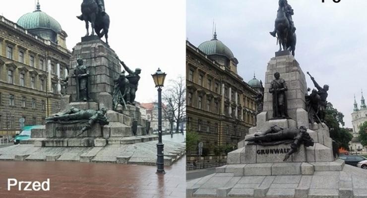 Zakończyły się prace renowacyjne Pomnika Grunwaldzkiego, usytuowanego na pl. Jana Matejki. Do odnowy monumentu wykorzystano 60 kilogramów ścierniwa, powstałego ze sproszkowanych łupin orzechów arachidowych oraz kilka kilogramów wosku.