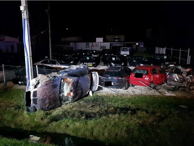Samochód (marki BMW) uderzył w znaki oddzielające pasy ruchu, następnie dachował i wpadł w ogrodzenie komisu samochodowego, uszkadzając znajdujace się tam samochody (4).W wyniku zdarzenia poszkodowana została jedna osoba - 24 letni, nietrzeźwy mężczyzna, który trafił z wielonarządowymi obrażeniami ciała do brzeskiego szpitala. Działania miejscowej straży pożarnej i policji trwały do godzin porannych.
