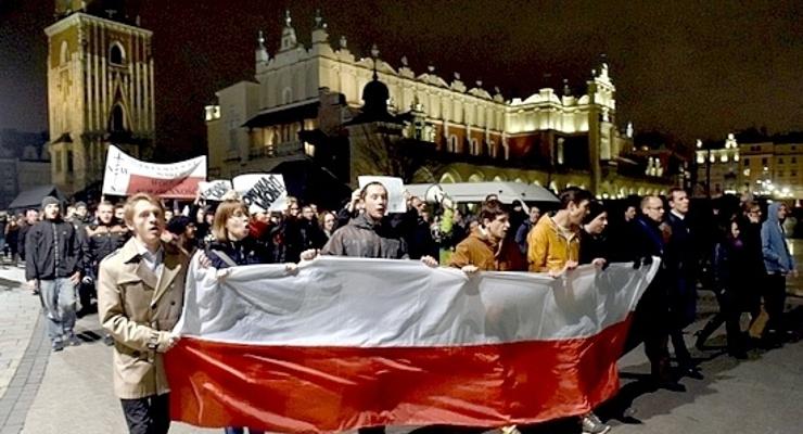 Przed Małopolskim Urzędem Wojewódzki przy ul. Basztowej, gdzie znajduje się siedziba komisji wyborczej, zebrało się około pół tysiąca, głównie młodych ludzi, którzy przynieśli ze sobą biało-czerwone flagi.