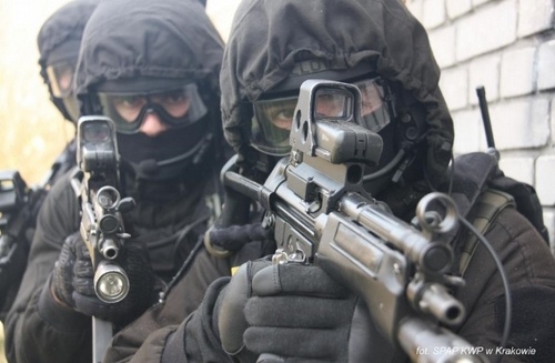 Mężczyzna został zatrzymany przez policyjnych antyterrorystów.